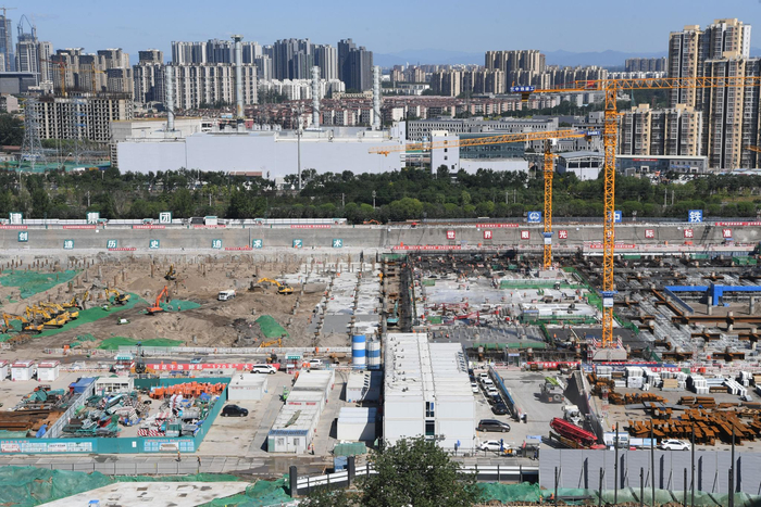 2021年6月17日,北京,城市副中心站综合交通枢纽项目进入主体结构施工阶段。图/IC photo