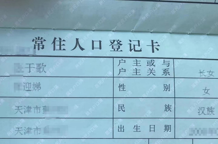 在《办理常住户口登记申请书》中,于歌写道,我是迎娣……在日常生活中,现用名字有歧义,经常被人取笑,在工作上造成了很大的困扰,导致给本人造成了不可磨灭的心理伤害,特诚恳向贵所申请将现用名“迎娣”更改为“于歌”。