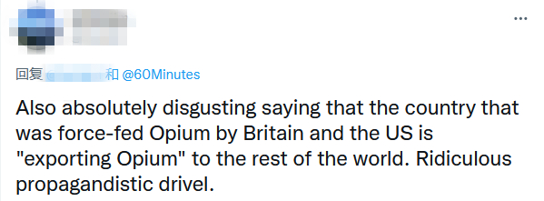 还有人怒斥哈里斯的发言“令人恶心”,“污蔑一个曾被英美强行喂食鸦片的国家正向世界其他地方‘出口鸦片’,荒谬的宣传乱语。”