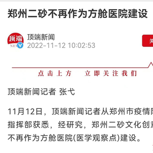 最新消息:据河南日报报业集团旗下的顶端新闻报道,11月12日,记者从郑州市疫情防控指挥部获悉,经研究,郑州二砂文化创意园不再作为方舱医院(医学观察点)建设。