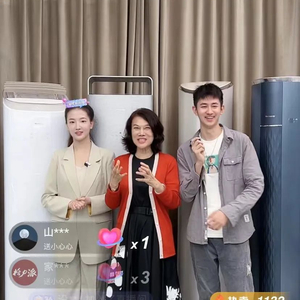 在上述直播中,董明珠在卖力推广格力产品的同时,也不忘“调节气氛”。她笑着说,“秘书漂亮,我很开心。旁边的小伙子也很帅”。