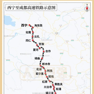 西宁至成都高速铁路起自青海省西宁市西宁站,经青海省海东市、黄南藏族自治州,甘肃省甘南藏族自治州,四川省阿坝藏族羌族自治州,接入四川省成都市成都东站,正线全长836.5公里,设计时速200公里。