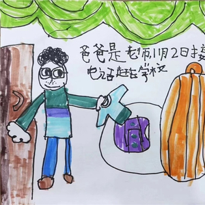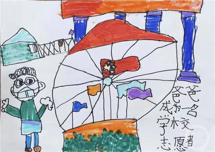 他坦言,疫情发生以来自己留守学校从事疫情防控志愿服务,吃住都在岗位上,有时间会通过视频电话和女儿“见面”,有时太忙了也顾不上联系。“每次打电话她都会问,爸爸你好久回来呀?”当天,恰好小朋友所在幼儿园收集家庭成员抗疫的故事,她便拿起画笔,将对爸爸的思念之情表达得淋漓尽致。