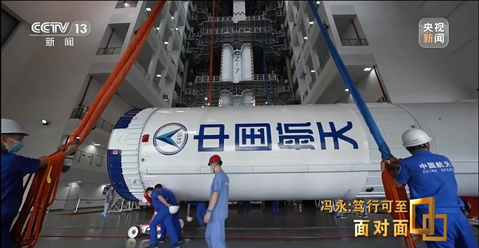 冯永:它在距离地面大概五十多米的一个操作平台上,要打开整流罩的侧操作口,打开我们密封舱的一个侧操作口,装到一个里面有温度控制的装置里,然后在逆流程把这个舱门给它关上。虽然这个装的货物并不重,但是因为是高空作业,下面就是装满了氧化剂和燃烧剂的火箭,所以对于咱们操作人员还是一个考量。