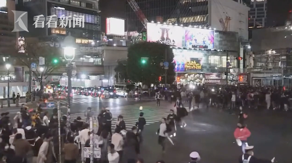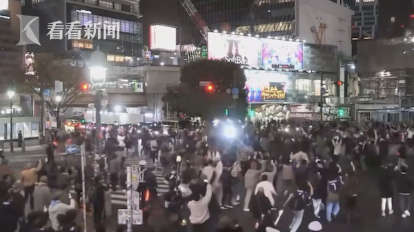视频|大批日本球迷冲上街庆祝 东京出动防暴警察疏导