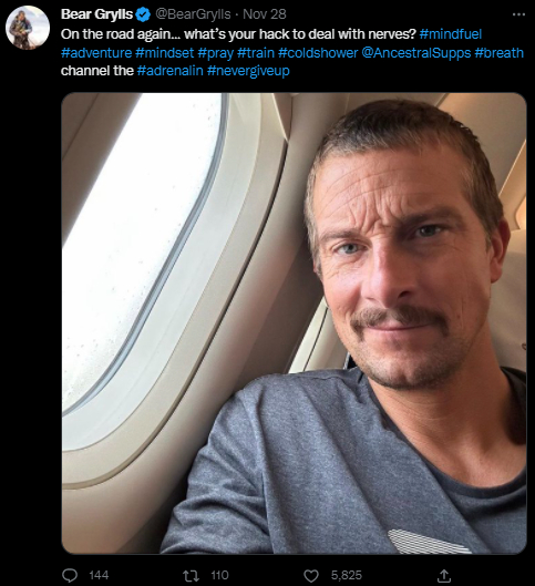 RT表示,目前贝尔还未就其乌克兰之行发表任何官方声明。不过,报道提到,本周早些时候,他在社交媒体推特账号上发布了一条“相当神秘”的推文,写道:“又上路了……你们有什么应对紧张的方法吗?”配图是一张自己在飞机上的自拍照。↓