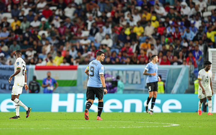 苏亚雷斯(左二)告别本届世界杯。