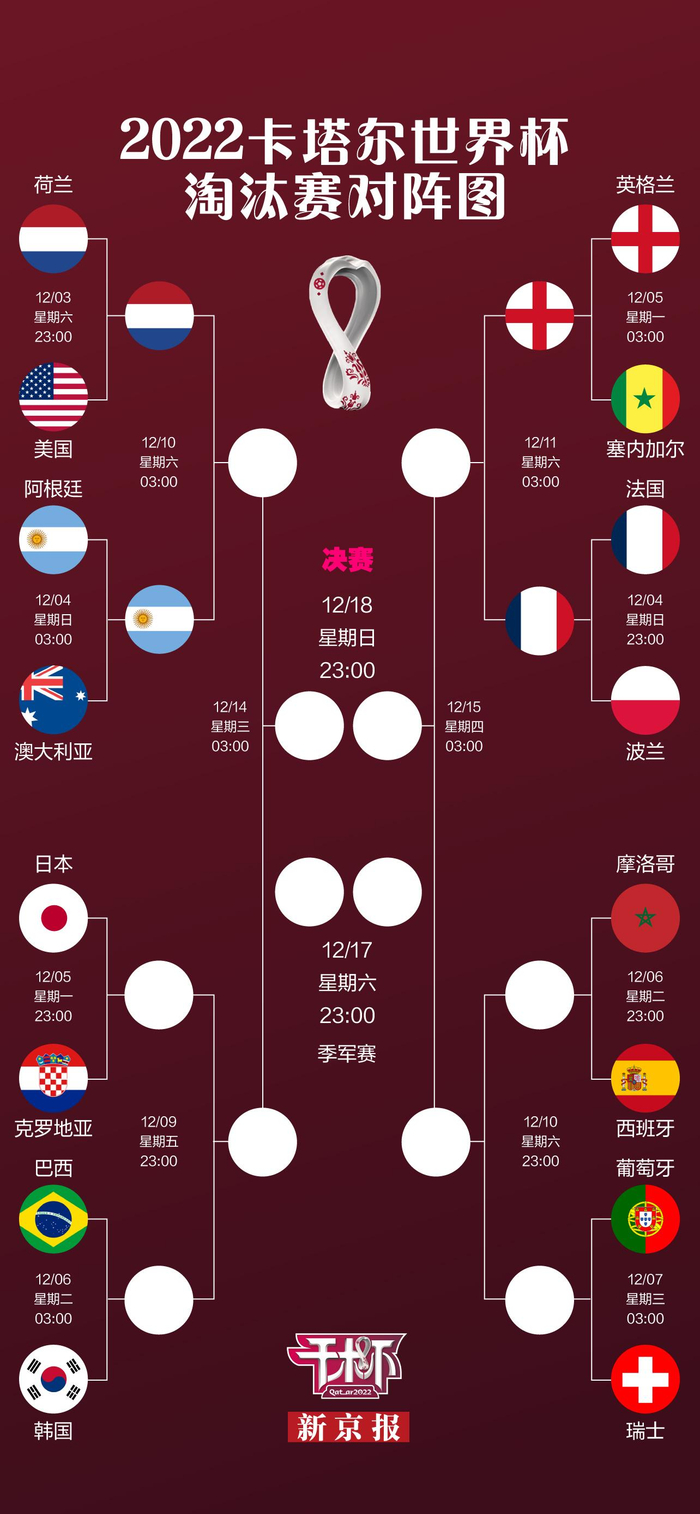 卡塔尔世界杯淘汰赛对阵图