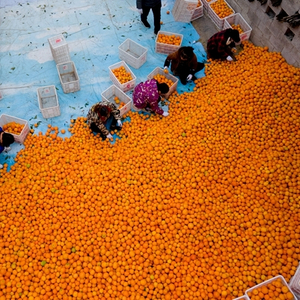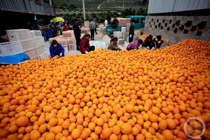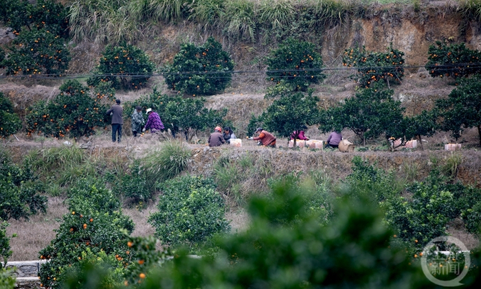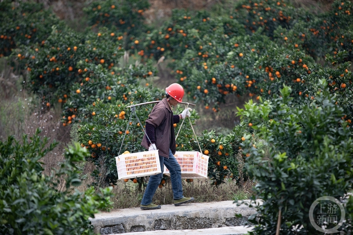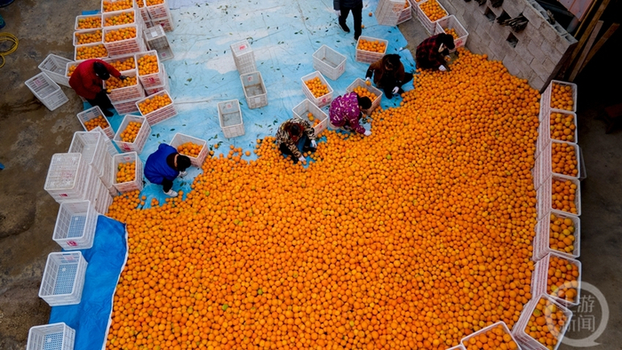 万亩脐橙迎来收获季,到处呈现出一派繁忙的丰收景象。