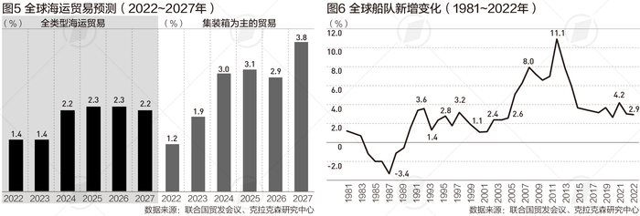 对于自2023年开始的未来5年,报告预计,全球海运贸易的年均增幅将略有提升,可能达2.1%,但整体低于过去30年年均3.3%的增幅。联合国贸发会议称,未来海运贸易预期放缓的原因不仅有疫情滞留的影响,还不能忽视宏观经济的强劲逆风。