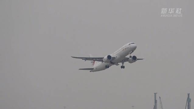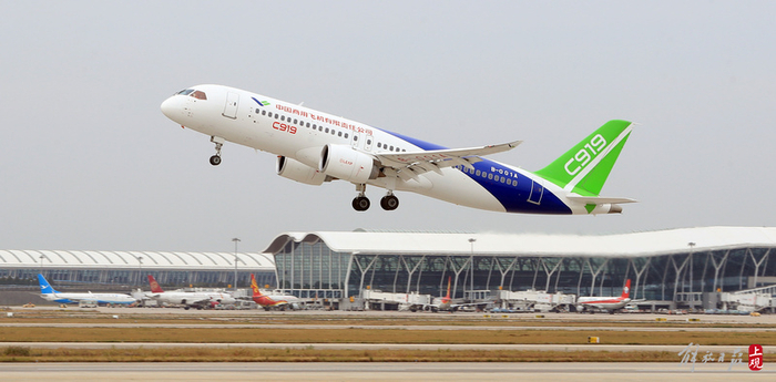 2017年11月10日上午,国产大型客机C919从上海浦东机场起飞,飞往西安阎良,航程超1300公里。当日上午11时38分, C919飞机从上海浦东机场第4跑道起飞,经过2小时24分的飞行,于14时01分成功抵达西安阎良机场。