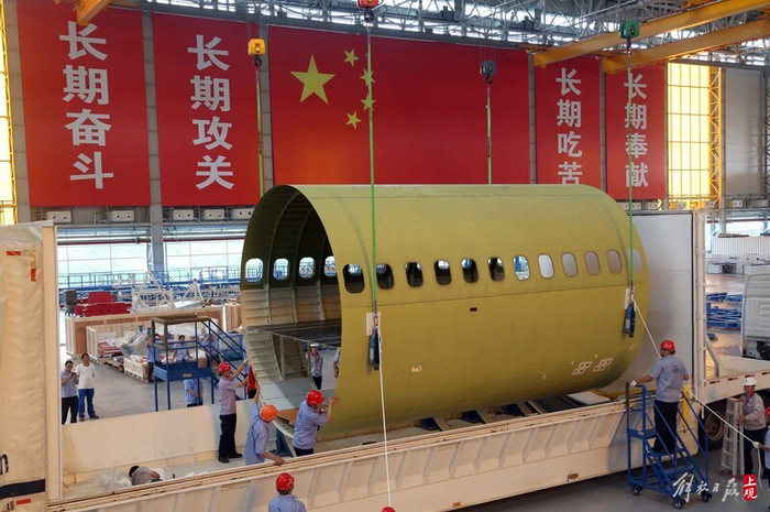 2014年5月15日,中国商飞C919大型客机前机身大部段在江西南昌成功下线。C919大型客机是我国拥有自主知识产权的商用飞机,最大载客量190座。前机身大部段是国产C919大型客机项目研制过程中交付的首个大部段,采用以铝为基、加入适量锂的第三代铝锂合金材料,在国内民机应用上尚属首次。