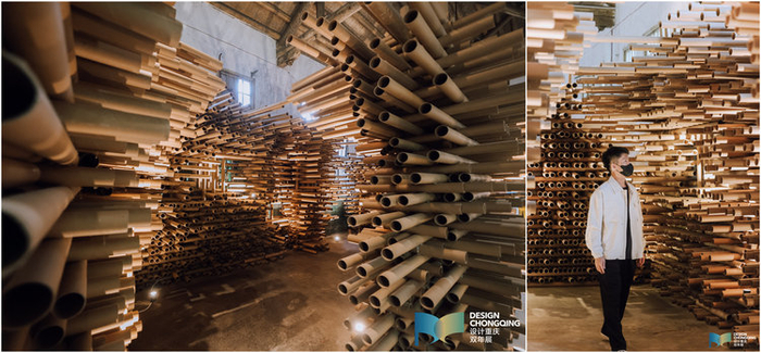 两届“金瓦奖”金奖得主冯焕辉用666根纸筒构造出的空间