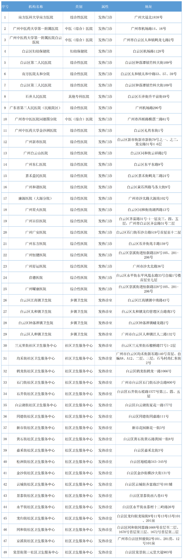 记者了解到,为做好发热患者医疗保障工作,近日,广州越秀、荔湾、番禺、白云等区公布发热门诊(诊室)医疗机构名单。