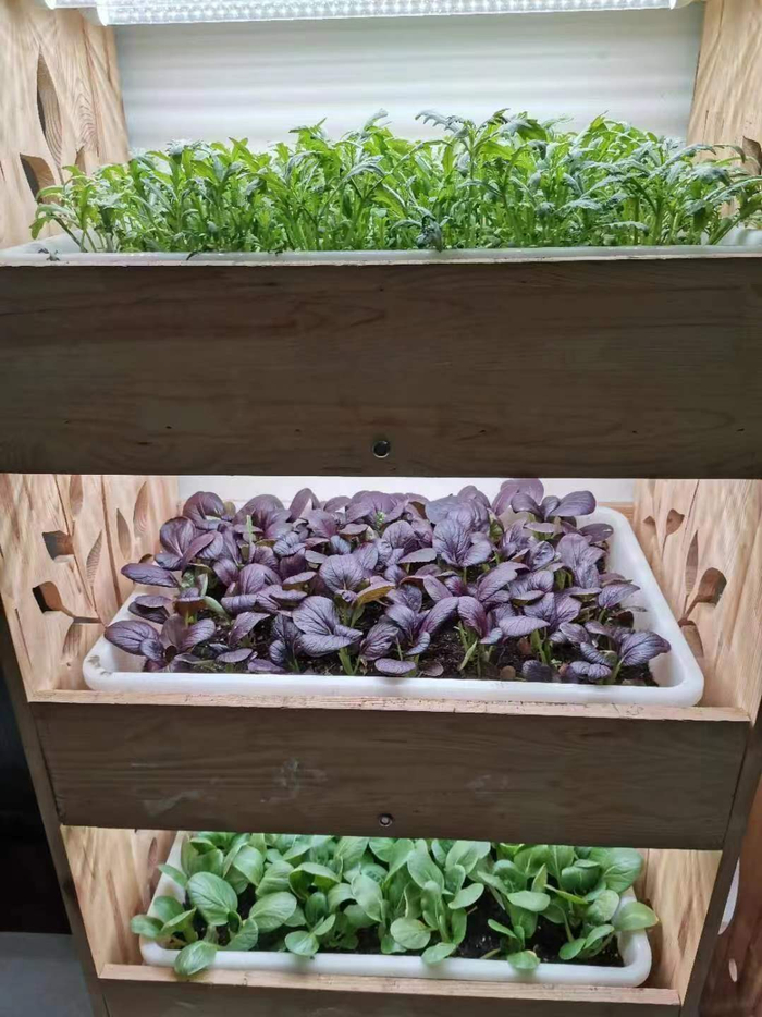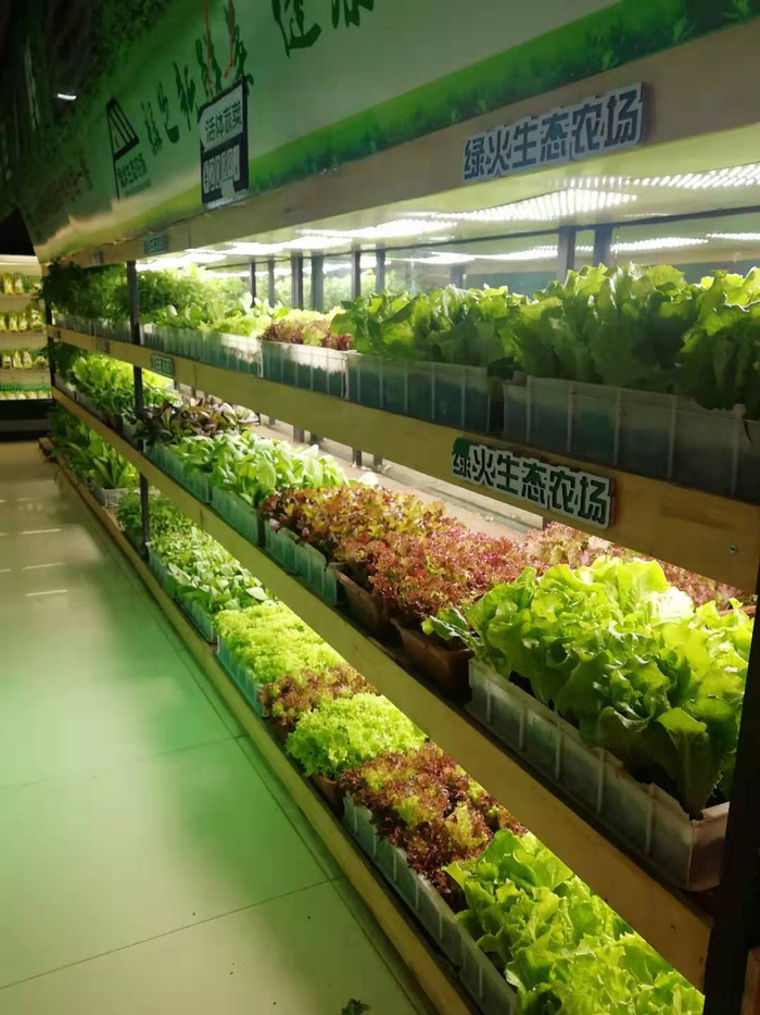 在绿火生态农场,从土壤配置、盆架制作、种子选取、育苗、病虫害防治和运输全过程严格管理, 配送到居民家中的活体蔬菜,摆放在菜架上,灯光代替阳光补光、浇水由定时装置自动进行,长势跟温室大棚没有区别。