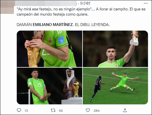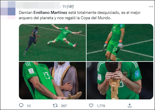 “马丁内斯完全疯狂了,他是这个星球上最好的门将,他给我们带来了世界杯。”