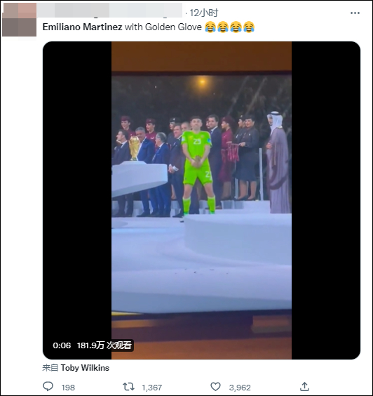 阿根廷夺冠后,马丁内斯也凭借自己的优异表现夺得本届世界杯金手套奖。