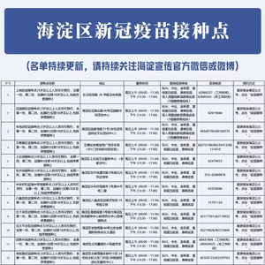 最新!海淀区27个新冠疫苗接种点位表来了!(健康海淀)