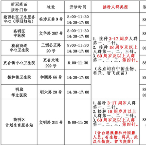 新冠疫苗接种门诊开诊信息如下