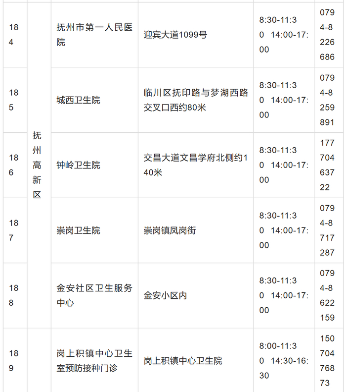 为方便广大群众接种新冠疫苗,现对南昌市新冠疫苗接种门诊信息进行公示,请未接种疫苗的市民朋友尽快去附近的新冠病毒疫苗接种门诊接种疫苗。后续门诊信息会持续更新,请大家关注南昌市疾病预防控制中心微信公众号。如有更改或其它具体要求请以各县区公示信息为准。