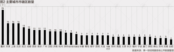 北上广深以及天津、南京、武汉、厦门、佛山等二线城市,都已经进入“无县时代”。其他一些城市如济南、青岛、杭州也通过撤县设区,实现了中心城市平台扩容。也有不少三四线城市通过撤县设区做大中心城市平台。不过,一些三四线城市存在市辖区面积太小的问题,尤其是“单区市”,即只有一个市辖区的地级市,其城市框架过小,延伸空间不足,中心城市功能无法充分体现。