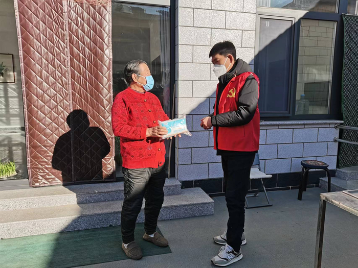 怀柔杨宋镇为辖区内80岁以上老人发放健康包,健康包内装有一次性医用外科口罩和两盒小柴胡颗粒。怀柔区杨宋镇供图