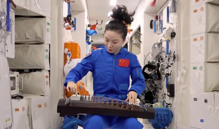 王亚平在太空用古筝演奏《茉莉花》。