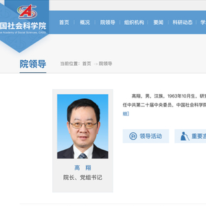 据中国社会科学院官网“院领导”栏目显示,高翔已任中国社会科学院院长、党组书记。