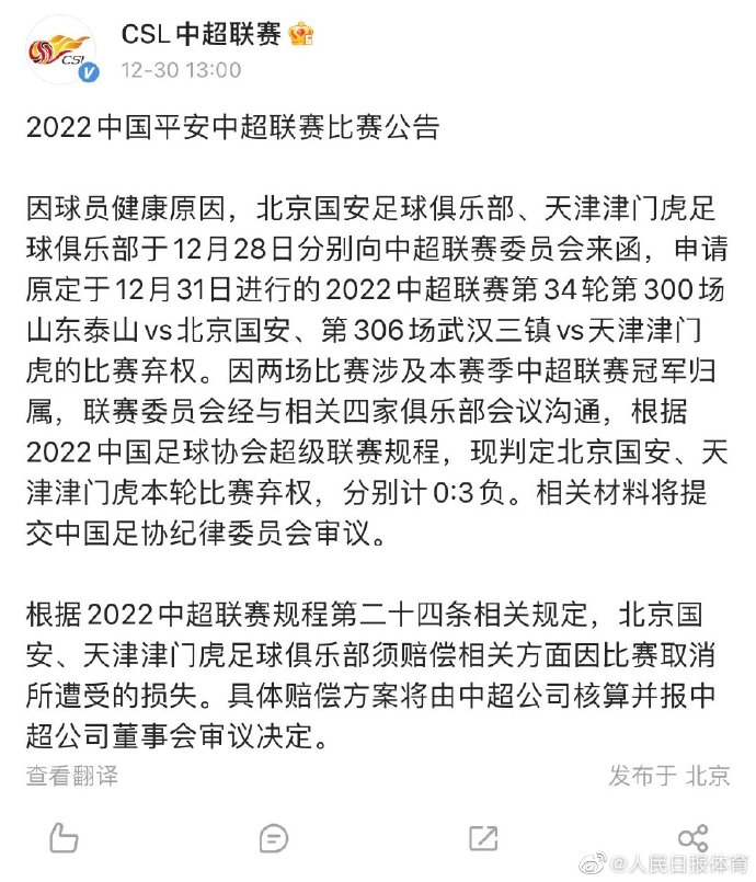 据@人民日报体育消息,随着北京国安、天津津门虎在中超末轮弃赛,武汉三镇赢得联赛冠军,至此他们上演了三年连夺中乙、中甲、中超联赛冠军的“凯泽斯劳滕奇迹”。