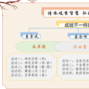 如该校一年级的本草园板块中,包含神农识药(科学)、神农百草(语文)、慧眼药童(数学)、乐愈心灵(音乐)和百草萌宠(美术)五个活动。在神农百草活动中,学生要借助拼音说出中草药的名称;在慧眼药童活动中,学生要根据不同的药盒对应准确的图形……别致新颖的设计引来了众多学生的点赞。