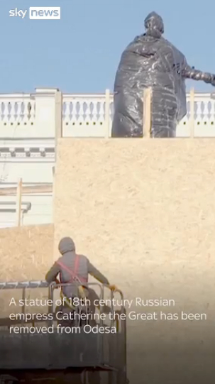 报道称,扎哈罗娃是对乌克兰港口城市敖德萨近来拆除沙俄女皇叶卡捷琳娜二世、俄国将军苏沃洛夫的雕像作出的上述表态。她表示,乌克兰当地政府“像黑夜中的罪犯一样”拆除了叶卡捷琳娜二世的雕像,这是在“篡改(乌克兰)自己的历史,破坏并替换(乌克兰)人民的历史记忆”。