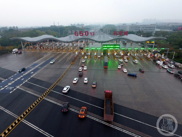 重庆高速集团相关负责人介绍,重庆高速公路智慧收费站取消了传统的岗亭设置,使用无亭化收费车道。