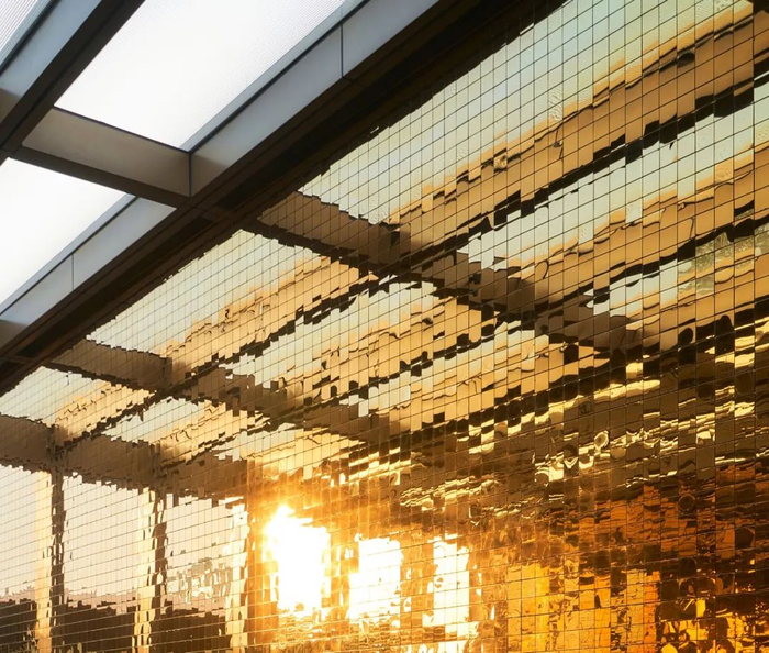 风起之时,由22.4万片金属片构成的风铃墙亦轻微摆动。浮光掠影间,时尚气息沿光影脉络静静流淌。