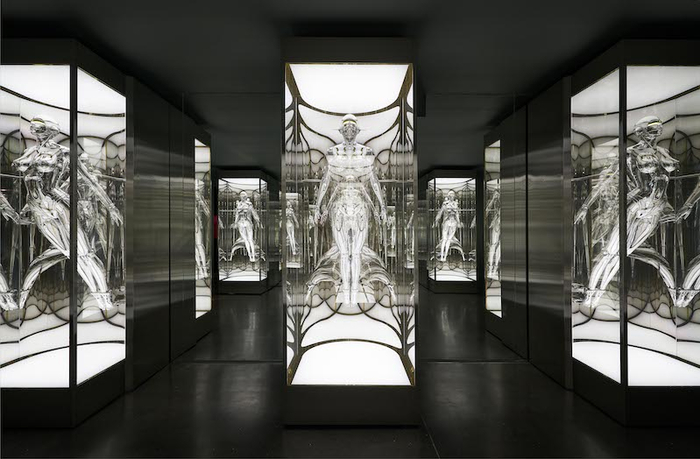 2019年,他与DIOR合作,将39英寸高、涂满了金属色的巨大“机械姬”装置陈列在男装秀场,空山基的名字从亚文化领域跃升入主流视野。