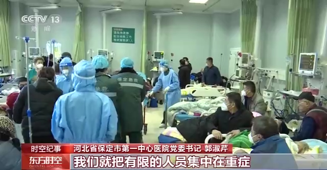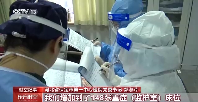 河北省保定市第一中心医院党委书记 郭淑芹:把有限的人员集中在重症,保证重症的病人有人救,包括我们职能科室,当过大夫的,而且是一些专家,全部穿上白大褂上岗。
