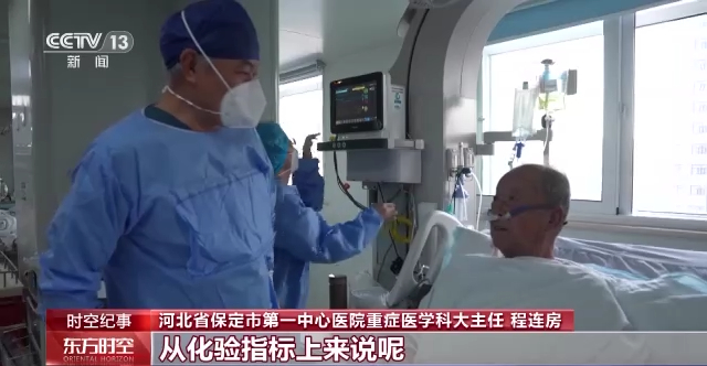 河北省保定市第一中心医院重症医学科大主任 程连房:从化验指标上来说,确实是比昨天要好多了。咱们当时会诊的时候,始终在静默缺氧,身体有缺氧,到时候怕引起多脏器的缺氧损伤,这样的话最大限度地保证你的安全。
