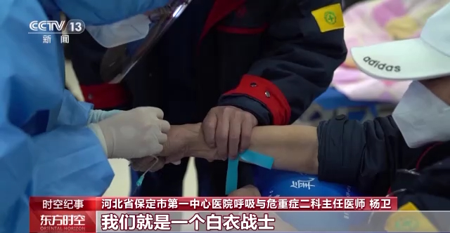 河北省保定市第一中心医院呼吸与危重症二科主任医师 杨卫:我们既然选择了这份职业,我们就是一个白衣战士,争取在自己的工作岗位救治更多患者,让更多人通过治疗能够痊愈出院。每个人都去努力,每个科室都去努力,每个医院都去努力,每个城市去努力,咱们国家才能扛过这个疫情。我认为目前的疫情,只有每个人付出自己的应有职责,才能够拧成一股绳,才能共同渡过这个难关。