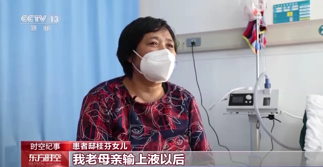 患者邸桂芬的女儿:到这以后,医生护士接诊得挺好,我母亲输上液以后当天晚上就退烧了,马上也能吃点东西了,恢复得挺好的,感谢医院的医生护士们。