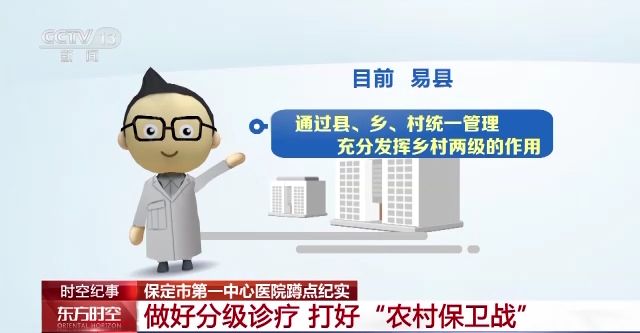 目前,易县通过县、乡、村统一管理,充分发挥乡村两级的作用,基层首诊初步筛查,将轻症病人留在基层治疗;县医院与全部乡镇卫生院,建立了远程心电和远程影像中心,可以让患者在基层就能得到明确诊断;与上级医院随时会诊,为患者提供上下转诊服务,真正落实了分级诊疗。