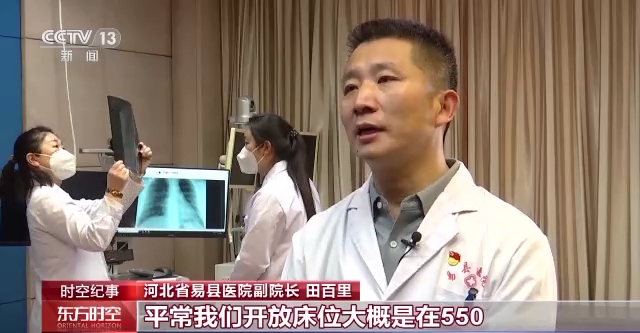 河北省易县医院副院长 田百里:平常我们开放床位大概是在550,现在的编制床位已经增加到650了,我们现在还有一部分空间,可以再接纳一部分病人。