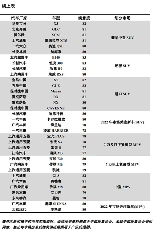 自2002年开始,中国质量协会已连续21年组织开展中国燃油汽车行业用户满意度(CACSI)测评,并每年定期向社会发布测评结果。2022年CACSI测评对象为销量较大的184个品牌车型,涉及全国39个汽车生产企业、48个汽车品牌,调查范围覆盖91个主要城市。