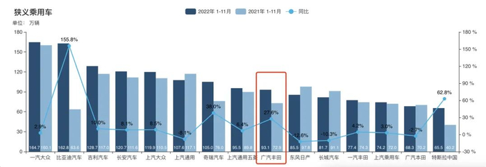数据显示,2022年广汽丰田销量达到100.5万台,并在合资车企整体大幅下行的背景下,保持两位数增长,以同比达21.4%的增幅,进一步夯实了2022年车市大变局中逆势突围的领跑者地位。
