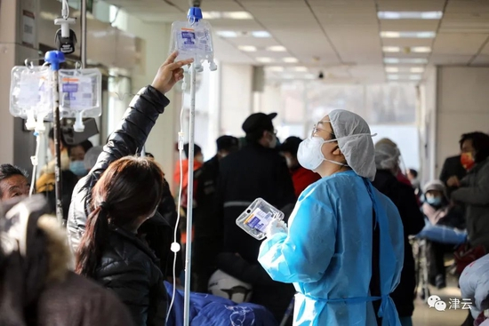 “今年冬天,特别是刚过去的2022年12月份,应该是我34年从医生涯当中最艰难的时刻。”1月5日早上9点,记者在天津医科大学总医院急诊科看到,候诊大厅里住满了留观的患者,身着蓝色防护服的医务人员在床位缝隙间穿梭着。患者不断地增长,医护人员不断地病倒。天津医科大学总医院急诊科主任柴艳芬说,“刚刚过去的这一个月,心一直是揪着的,太难了。”