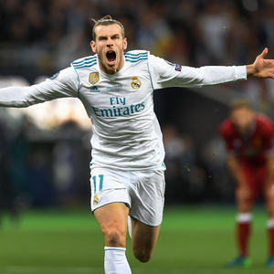 2018年欧冠决赛面对利物浦,贝尔倒钩破门。