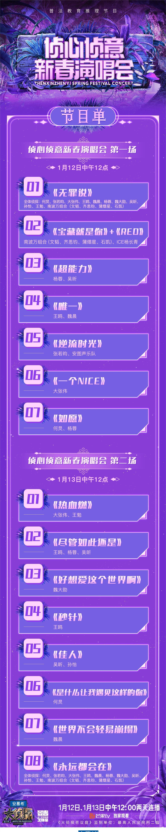 《大侦探》第八季新春演唱会节目单公布,王鸥魏晨再唱《唯一》