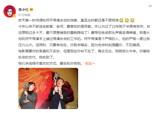 何平担任过中国电影导演协会秘书长,也始终在帮助年轻导演,扶持陆川等新一代中坚力量。他最后几条微博中,不是为后疫情时期的中国电影谏言,就是在为李玉、李睿珺、陈思诚等导演的新片上映卖力吆喝。