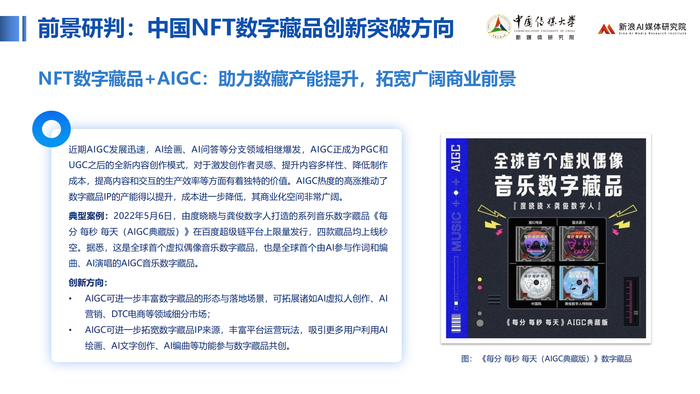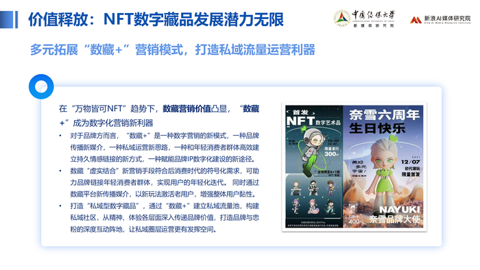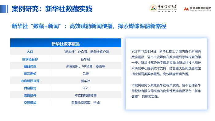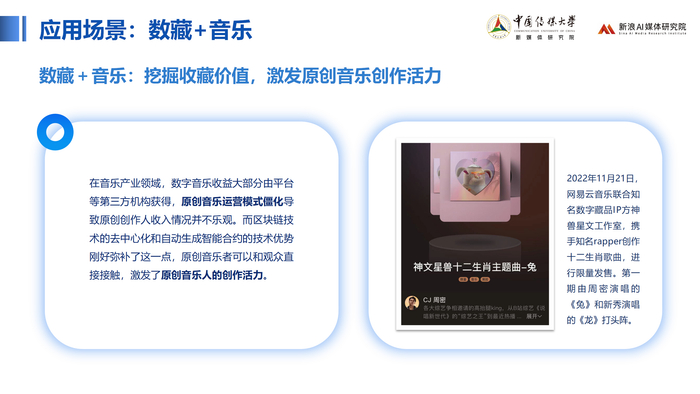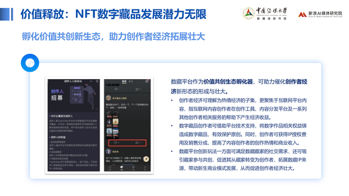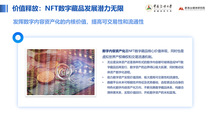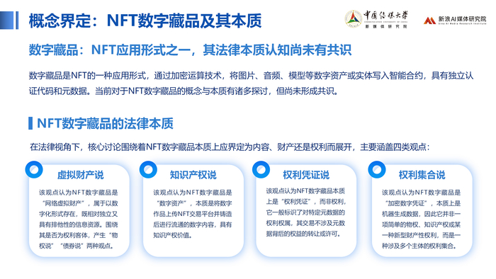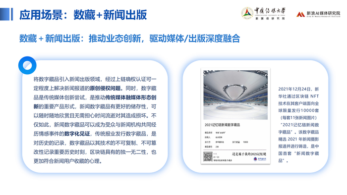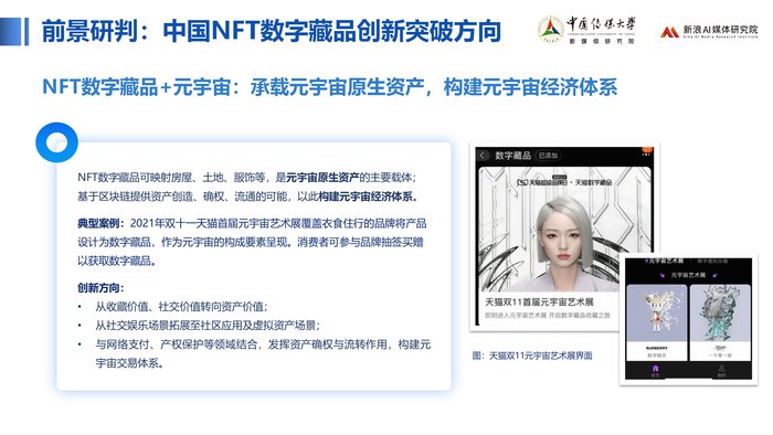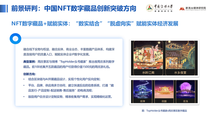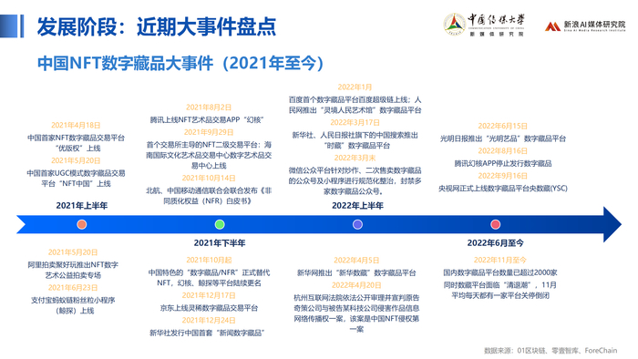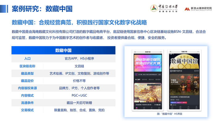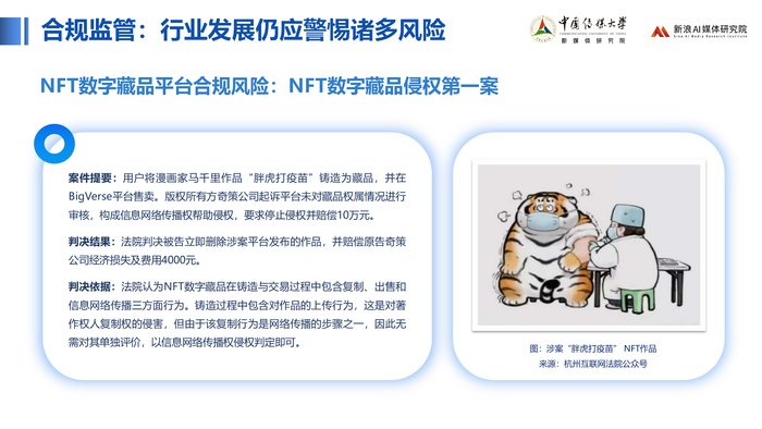 在元宇宙与Web 3.0热潮合推下,国内NFT数字藏品行业发展如火如荼,行业规模快速增长,整体发展步入合规建设提速期。2023年1月12日,中国传媒大学新媒体研究院与新浪AI媒体研究院联合发布《价值回归 合规致远:中国数字藏品主流平台创新研究报告》。作为国内NFT数字藏品领域产学研用协作创新的重磅成果,本研究报告聚焦NFT数字藏品行业发展价值回归与合规致远两大关键词,深入挖掘国内领先数字藏品平台先进经验,前瞻探索国内数字藏品价值评估框架与合规发展路径,洞察把握行业创新突破的未来态势。
