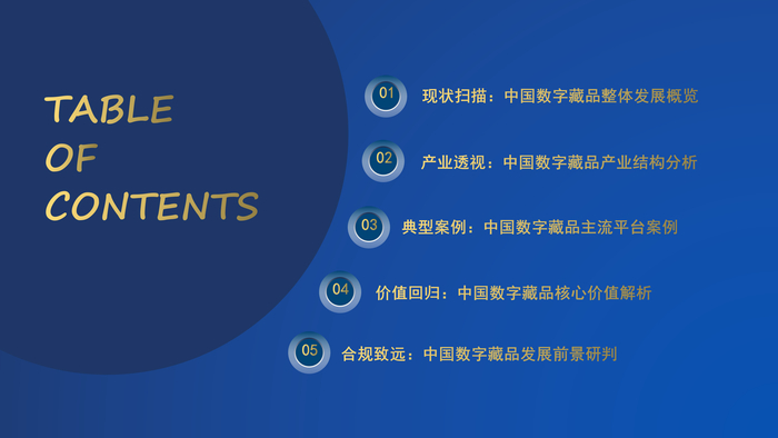本报告包括五大部分:第一部分全面扫描中国数字藏品整体发展概况;第二部分深度解析中国数字藏品产业结构、平台生态与应用场景;第三部分聚焦中国数字藏品主流平台案例,深度解读“鲸探”、微博“TopHolder头号藏家”、“数藏中国”、新华社数字藏品等优秀案例;第四部分提出行业理性发展急需回归数字藏品内核价值,探讨科学规范化数字藏品价值评估体系框架构建;第五部分提出行业稳健发展急需以合规监管为前提,全面解析国内数藏行业发展面临的风险及其治理路径,以及数字藏品在AIGC、文化出海、实体经济赋能、DAO与元宇宙等创新突破方向上的强大潜能。