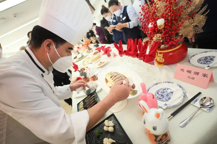 记者从聚德华天工会了解到,此次展示菜品,老字号兔年特色菜纷纷呈现,既有鸿宾楼过年的氛围菜大展宏图引人眼球,也有砂锅居的玉兔迎春、又一顺的豆沙福兔等创意菜。还有峨嵋酒家的古法蒸王鱼、烤肉宛状若花开的焦炒牛肉等过年大菜,及大家热点的曲园酒楼茶油剁椒鱼头、长椿街马凯餐厅的软炸大虾、老西安饭庄的泡馍和羊肉串等。