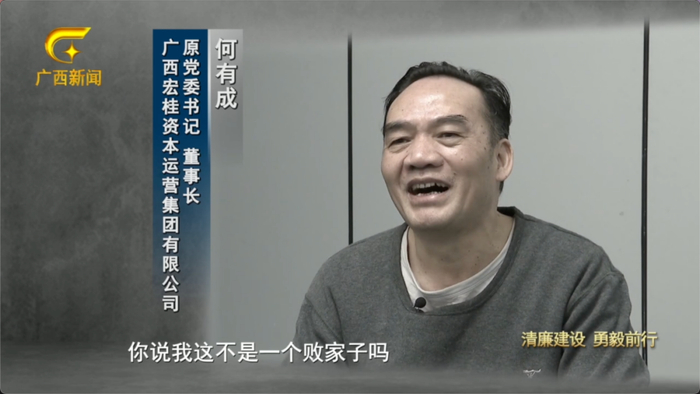 “我现在发现我什么都不是,真的,我很后悔。人生真的是没有再来,如果有再来,我这么做是干什么?我有必要吗?”面对镜头,广西宏桂资本运营集团有限公司原党委书记、董事长何有成忏悔道。